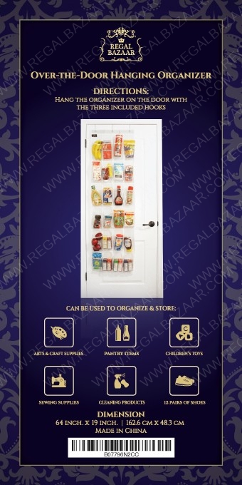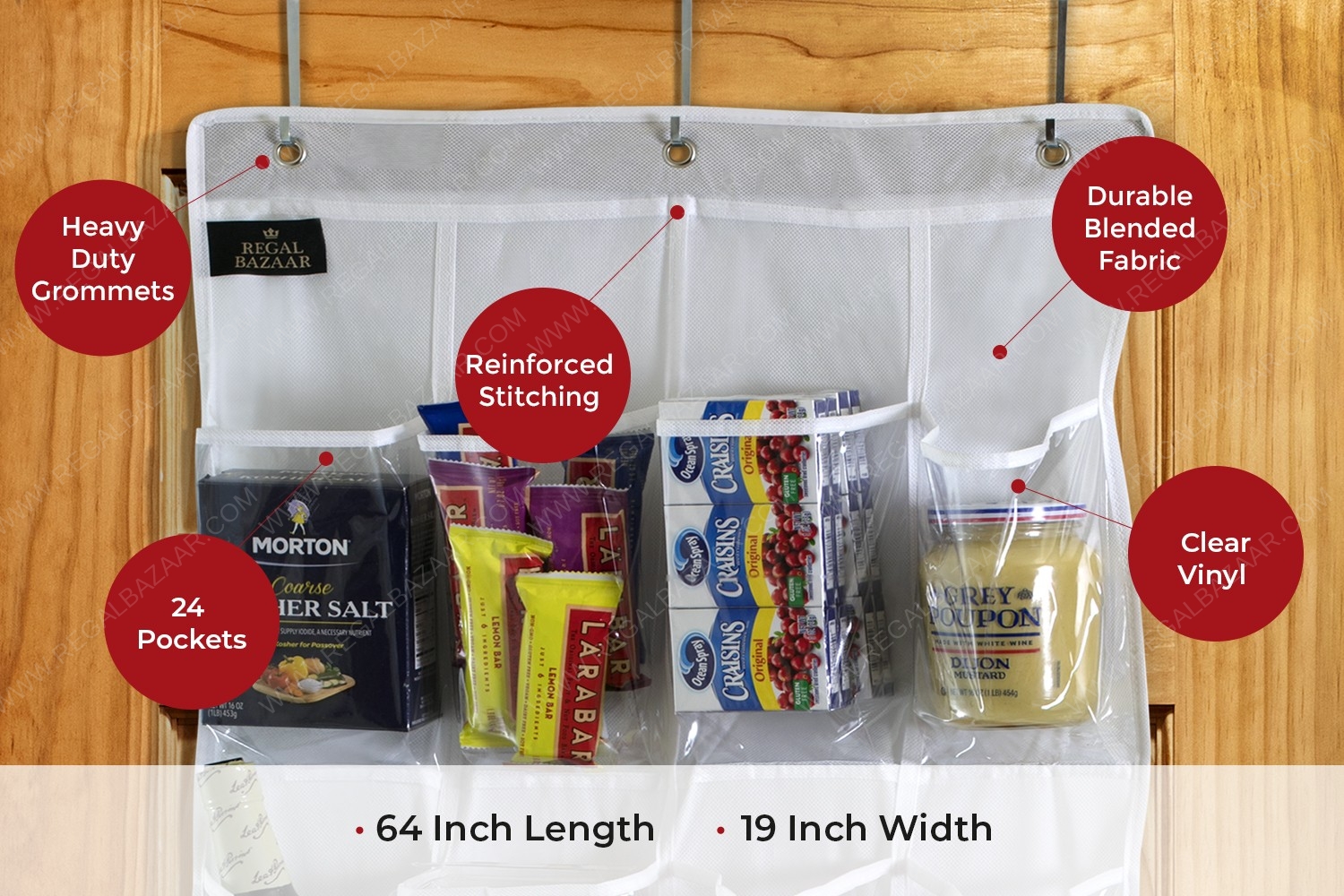 EASY TO USE. The organizer is 64 inches in length and 19 inches in width. It is lightweight and can be hung in no-time. This high-quality product can be used to store a variety of items. Any spills or splashes can be easily cleaned.